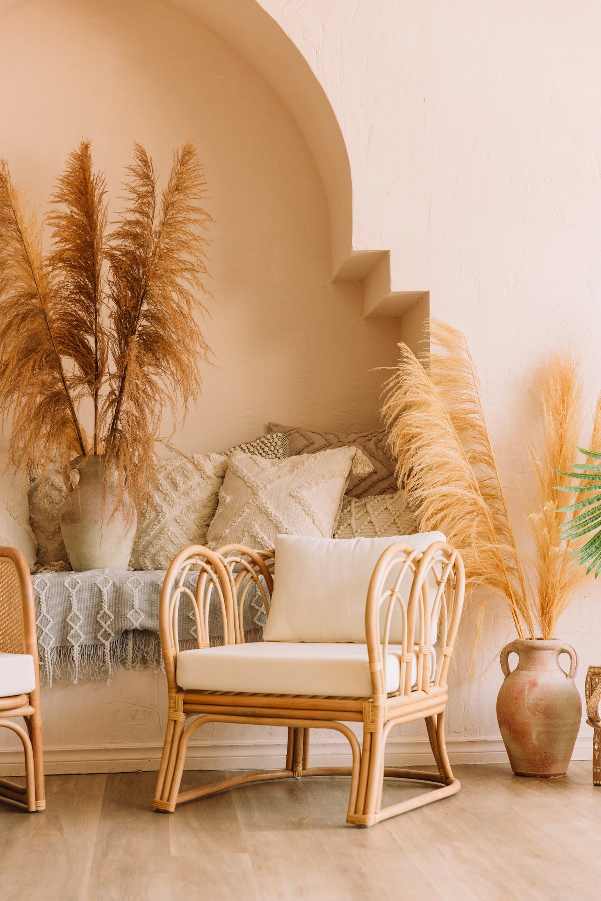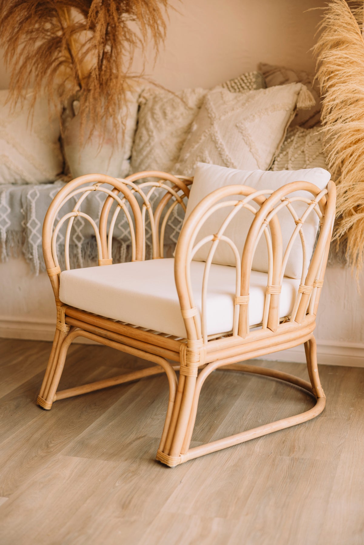 2 white cushions pictured here are included.